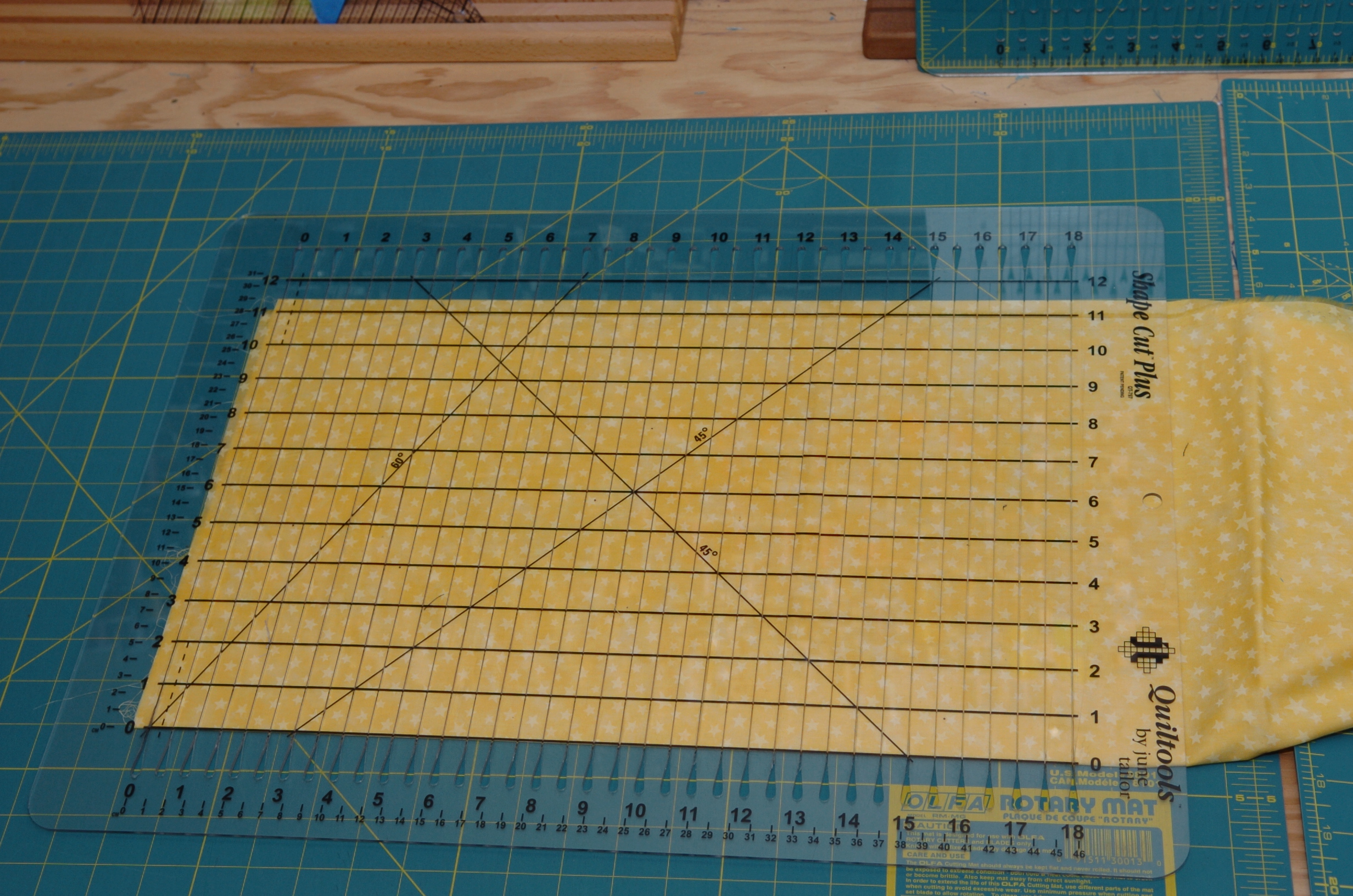 What is a June Tailor Shape Cut Ruler? Basically, it is a 16” wide by 22” long piece of flexible plastic with slots every ½” that run the width of the ruler. The cutting area is 12" by 18". It is easy to use and cuts strips, squares and rectangles, even fringe, much faster than with a regular ruler. Additionally, the ruler has markings for angles, so you can cut bias strips, diamonds and triangles.