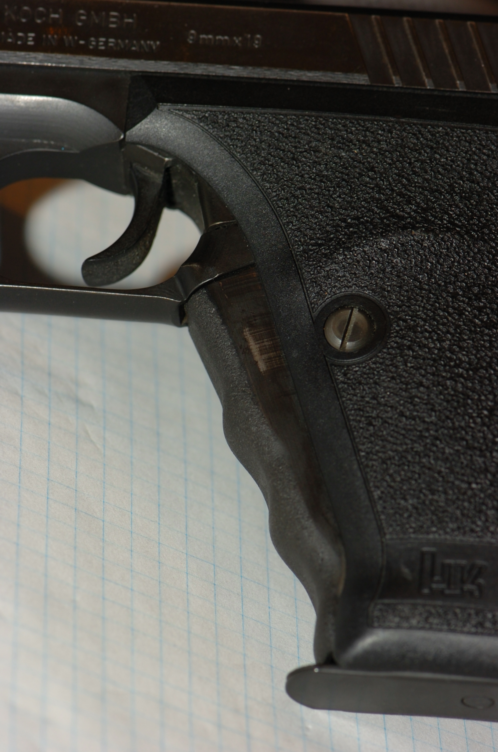 I have read elsewhere that one of the differences between a P7 and its later siblings is the inclusion of a "heat shield" above the trigger on the later models. With the gas piston assembly immediately above the trigger area, P7's are reportedly prone to getting "too hot to handle" when shooting a few hundred rounds on the range. When I was at Frontsight, we did about 200 rounds a day for five days, and I don't recall the gun ever getting anything like too hot to handle. Looking at one of my P7s just now, the area above the trigger guard looks like a solid metal part of the frame, so I'm not at all sure where this 'heat shield' goes, or if maybe not all "non M8" P7s are the same.