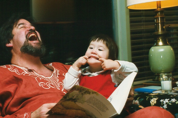 This is a series of photos I took of my brother Matt and his daughter Katie. I include it here because I like the photos, and it illustrates the nice lighting you get by using on-camera Bounce Flash. That's where the flash head is swiveled up to bounce the light off of the ceiling. The light becomes more even and comes from above, which is how we expect light to look. This avoids the "deer in the headlights" look that traditional flash gives you.